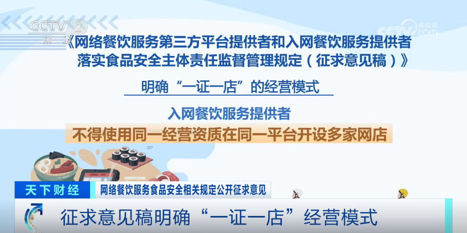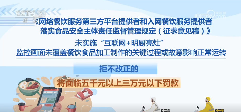 收罗看法稿明白了平台供给者收集餐饮办事食物平安从体义务,画面笼盖餐饮食物加工制做的环节过程,入网餐饮办事供给者该当实施“互联网+明厨亮灶”,将面对五千元以上三万元以下罚款。并封口后无法回复复兴和便于消费者辨识,平台该当正在网店首页加注“无堂食”标识。同时明白了异地管辖权问题。